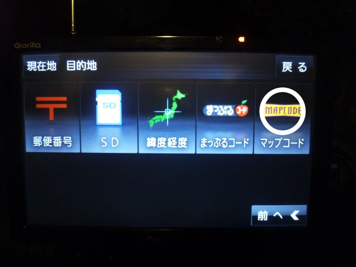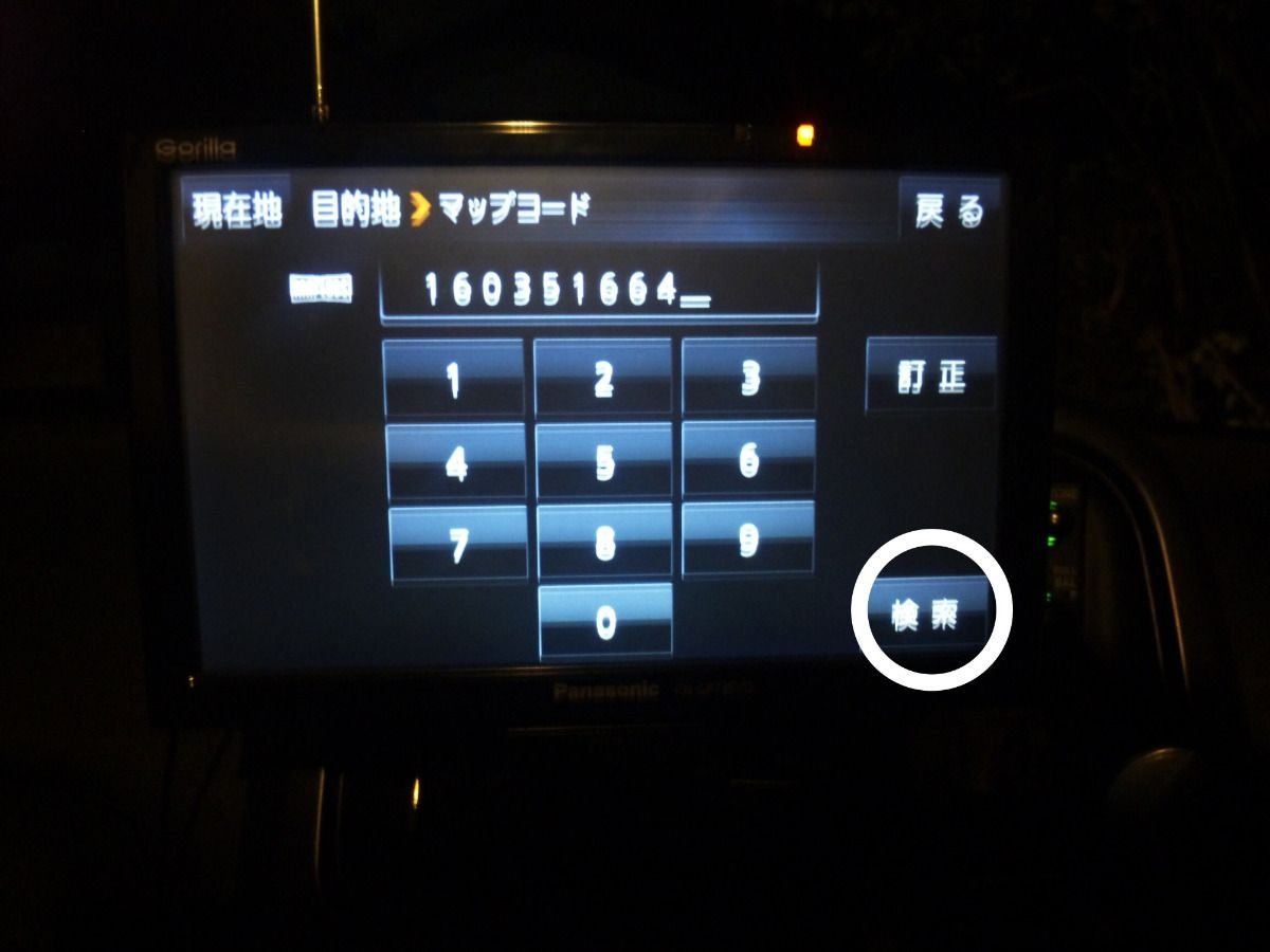 ゴリラでは緯度経度で指定する場合に北緯東経に小数点以下が入力できないため実際の目的地より数百メートルずれるのでマップコードでの検索をお勧めします。