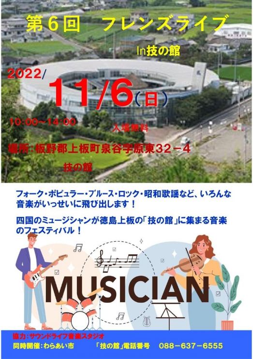 「フレンズライブ in 技の館」は月初めの第一日曜日に