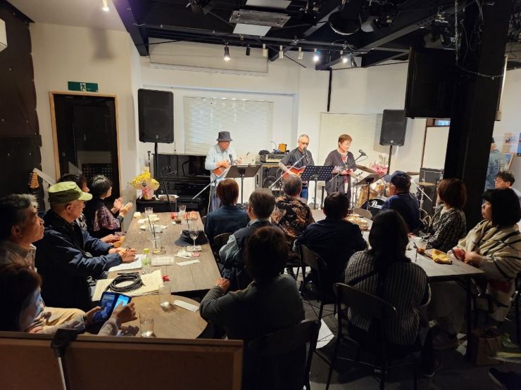 フォーク・ポピュラー、ブルース、ロック・昭和歌謡など色々な音楽が歌と演奏で盛り上がります。