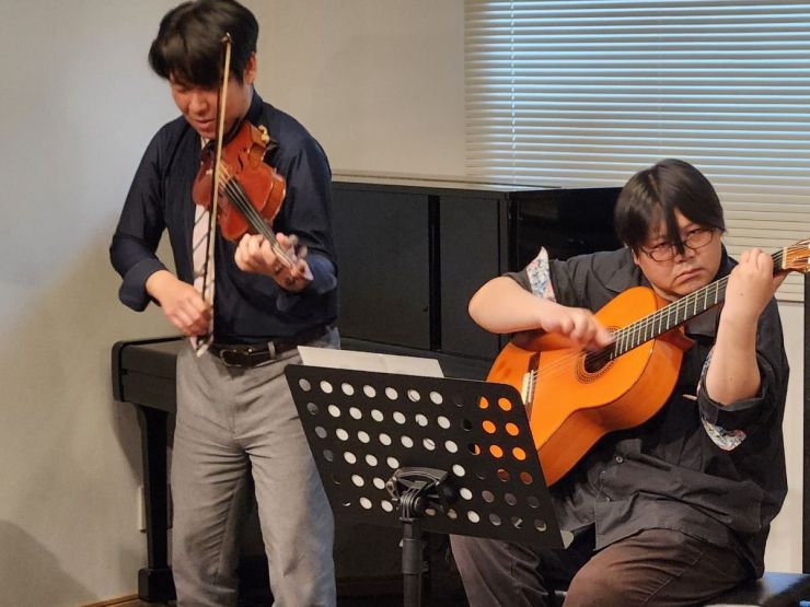 2人の2本の弦楽器が生み出す、次々と変わりゆく音色とリズムが特徴的。